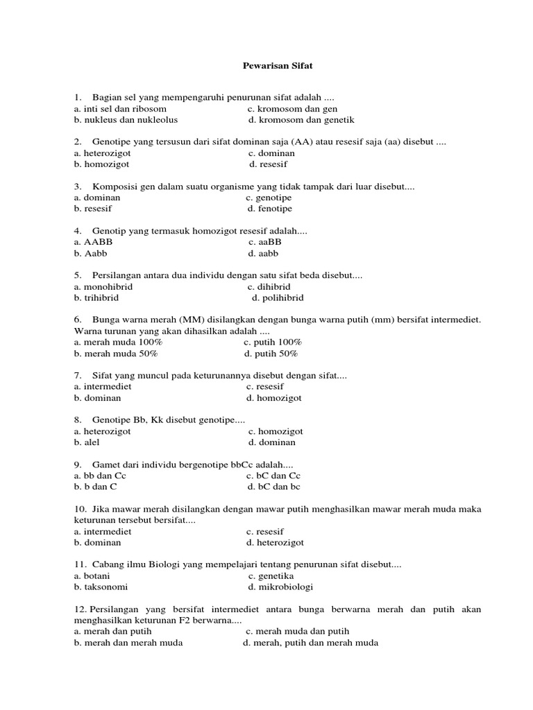Inti sel dan ribosom c. Sifat biologis yang utama dari bahan pangan adalah kandungan mikrobanya. Kromosom dan gen b keturunan dengan fenotip 50% merah dan 50% putih akan didapat dari persilangan induk dengan genotipe. Pada dna terdapat untuk instruksi yang memengaruhi sifat atau yang menentukan karakteristik setiap makhluk hidup. Penelitian pertama mengenai penurunan sifat adalah gregor mendel.
