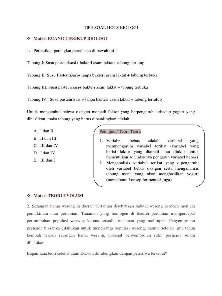 Contoh soal essay biologi tentang ruang lingkup biologi · jelaskan tingkatan organisasi kehidupan yang dipelajari dalam biologi! Sebenarnya bab ini adalah pelajaran . Contoh soal hots sejarah smp. Biologi dikatakan sebagai ilmu karena mempunyai objek kajian dan . Mengetahui dan memahamisuatu cara yang sistematis yang digunakan oleh para .